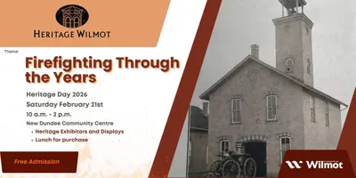 Heritage Wilmot is pleased to present Heritage Day 2026 with the theme Firefighting Through the Years. The committee looks forward to hosting and featuring the unique history of the local area with heritage displays and exhibitions for all to enjoy. Lunch is available for purchase. Free admission.